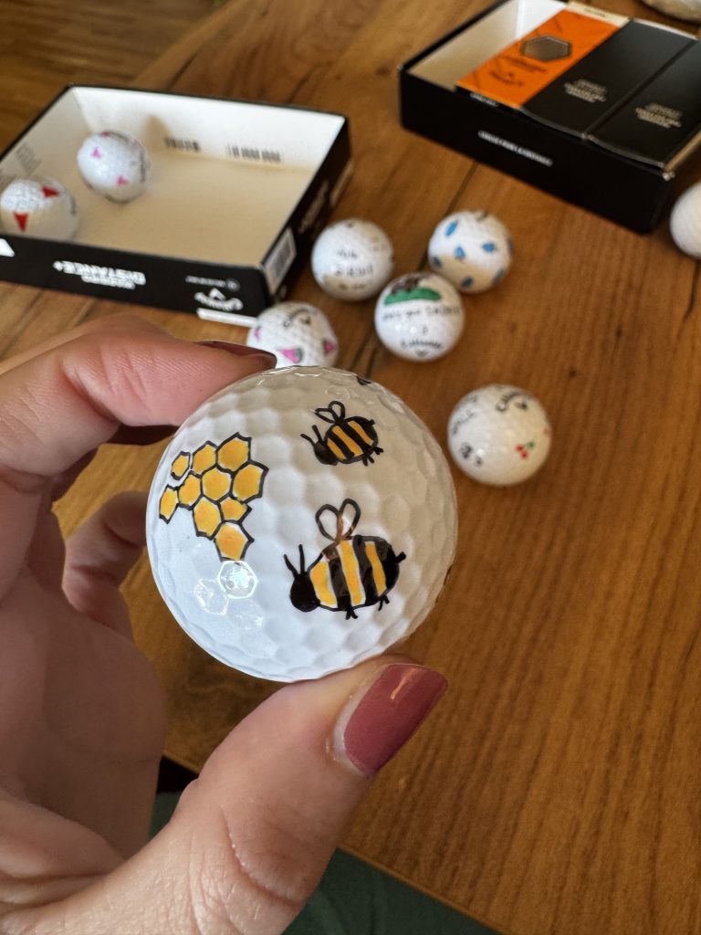 Ein weiterer kreativer Einfall meinerseits war es, Golfbälle zu verzieren. Auf Pinterest gibt es so viele wunderbare Vorlagen, dass ich das einfach ausprobieren musste: