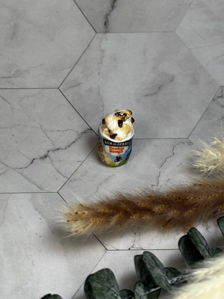 Besonders stolz bin ich auf meine Schlüsselanhänger mit realem Vorbild: Ein Mini-Döner, ein Jellycat-Pancake, ein kleiner Iced Matcha Latte und ein Mini-Cookie-Dough Eis von Ben&Jerry’s.