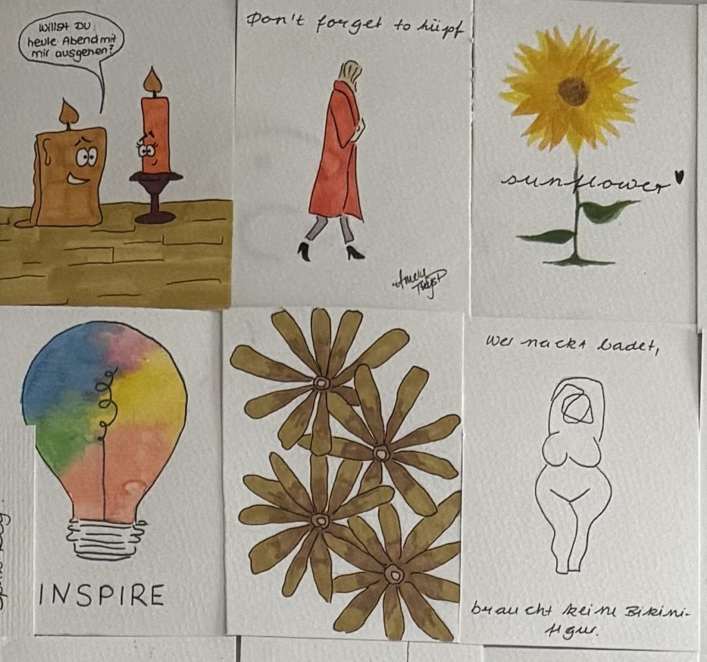 Schließlich hab ich es endlich geschafft, meine kleinen Aquarellbilder in ihrer Gesamtheit zu fotografieren:
